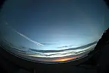 Perhaps borrowed from Russian небоскло́н (nebosklón). By surface analysis, niebo + -o- + skłon.