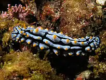 - A sea slug belonging to the order Nudibranchia.