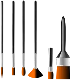 - paintbrush (instrument for painting or drawing, consisting of a bundle of hairs or feathers attached to the end of a handle)