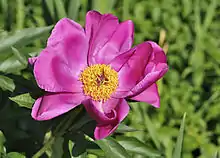 Borrowed from French pivoine, from Middle French pyoine, from Old French pyoine, from Latin paeōnia, from Ancient Greek παιωνία (paiōnía). Doublet of peonia.
