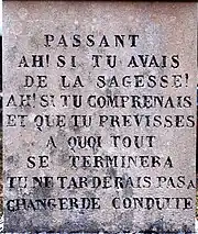 Passant, ah ! si tu avais de la sagesse ! ah ! si tu comprenais et que tu prévisses à quoi tout se terminera ! tu ne tarderais pas à changer de conduite
