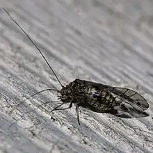 - (any species of Psocoptera): bark fly, bark louse, book louse, psocopteran