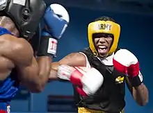 punch above one's weight (third-person singular simple present punches above one's weight, present participle punching above one's weight, simple past and past participle punched above one's weight)