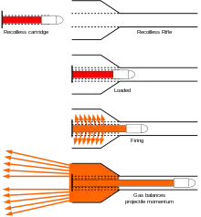 Recoilless rifle schematic, showing how the blast from behind is designed to coounter the thrust of the projectile