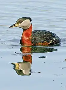 red-necked grebe (plural red-necked grebes)