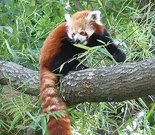 - An omnivorous mammal, Ailurus fulgens, native to the Himalayas and eastern Asia, which has dark red fur and a ringed tail.