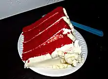red velvet cake (countable and uncountable, plural red velvet cakes)