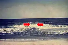 - (Australia, New Zealand) A rip current: a strong outflow of surface water, away from the shore, that returns water from incoming waves.