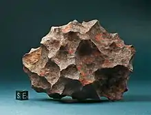 - (geology, photography) A reference cube of standard, unitary size, normally one centimetre long, or one inch long for older American versions, placed beside a rock or meteorite sample to show scale and orientation during photography. Four sides of the cube are marked N, S, E, and W, respectively, to indicate the cardinal points of the compass, and the other two sides are marked T and B, for top and bottom.