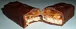 - chocolate bar (longish, slender chocolate bar which may be solid or with filling, one slab or divided into detachable bits)
