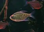 - diamond tetra, Moenkhausia pittieri (characin fish native to Venezuela, popular as aquarium fish)