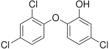 - (organic chemistry) A widely used wide-spectrum antibacterial and antifungal agent, with molecular formula C12H7Cl3O2, which works by disrupting the growth of microbes, rather than actively killing them.