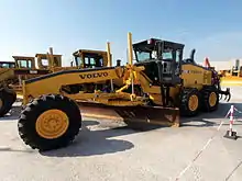 väg (“road”) + hyvel (“carpenter's plane”), formed like German Straßenhobel and Erdhobel.
