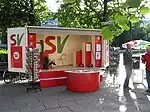 - In cold climate the booths may also be closed structures, offering the interested citizens the possibility to sit inside while talking to the campaigners. In Finnish such booths are often called vaalimökki.