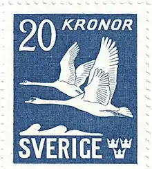 A Swedish airmail stamp from 1942 with a denomination of 20 kronor.